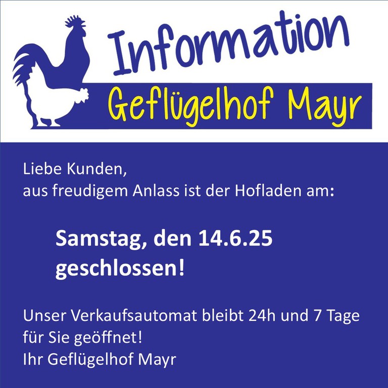 Samstag, den 14.6.25, bleibt der Hofladen geschlossen.